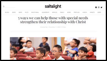 04 February 2021: “Want to start a disability ministry in your local church? Here’s a one-stop resource”, Salt & Light, Feb 4, 2021