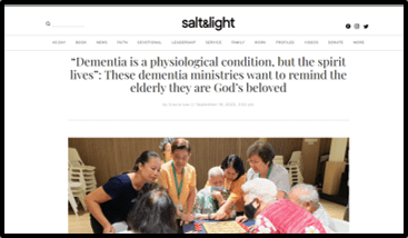 18 September 2023: “Dementia is a psychological condition, but the spirit lives”: These dementia ministries want to remind the elderly they are God’s beloved.” Salt &Light, September 18, 2023.