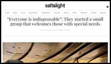 8 June 2024: “‘Everyone is indispensable”: They started a small group that welcomes those with special needs’.” Salt&Light, June 8, 2024.