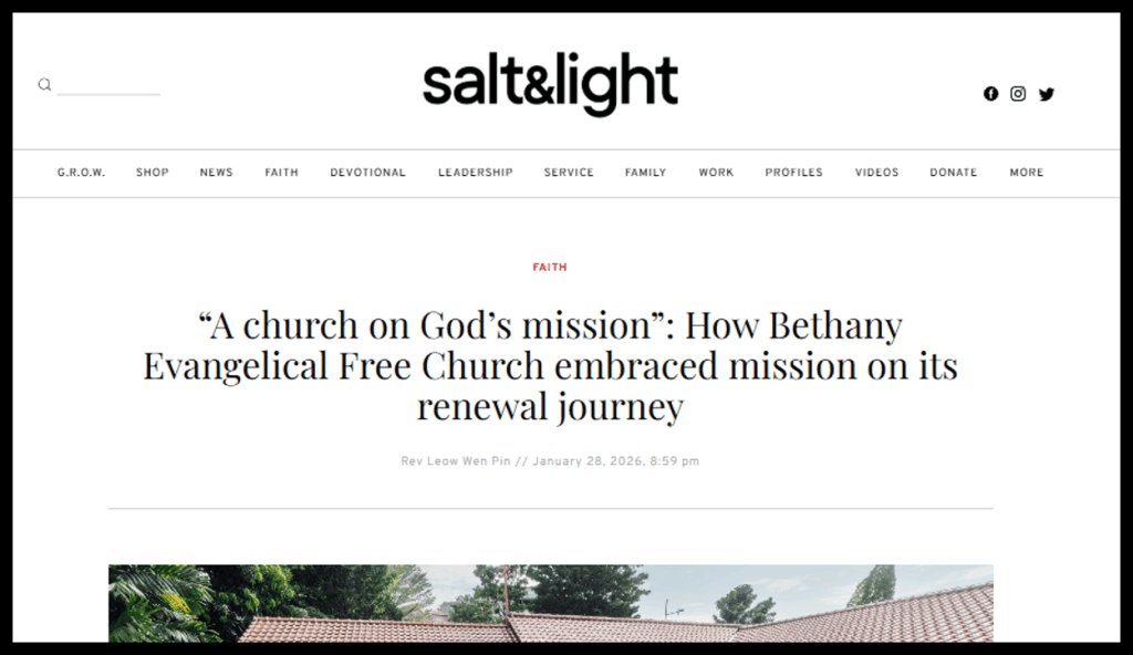 28 January 2026: “‘A church on God’s mission’: How Bethany Evangelical Free Church embraced mission on its renewal journey”, Salt&Light, January 28, 2026.